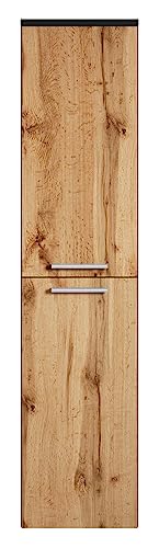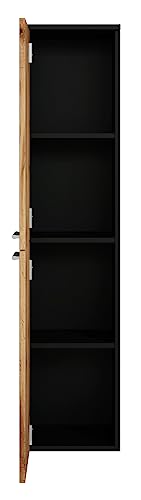 Badplaats B.V. Opbergkast Saturnus hoogte 130 cm zwart mat met eiken – opbergkast, hoge kolomkast