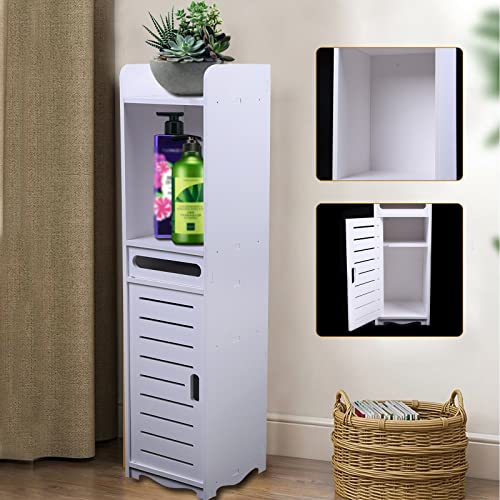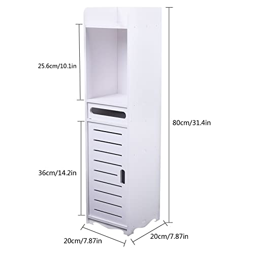 SHZICMY Badkamerkast, badkamerkast, hoge kast, staande badkamerkast, badkamermeubel met voeten, smal, hoge badkamerkast, modern in wit, 80 x 20 x 20 cm