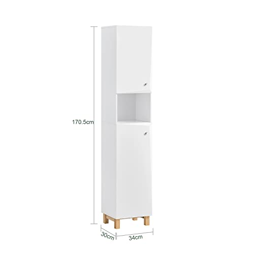 Sobuy Badkamer Kolomkast – Badkamerkast – Hoge Kast – Staande Kolomkast – Opbergkast Opbergplank met 1 Plank en 2 Deur voor Badkamer, Woonkamer, Slaapkamer, 34x30x170 cm, Wit, BZR91-W