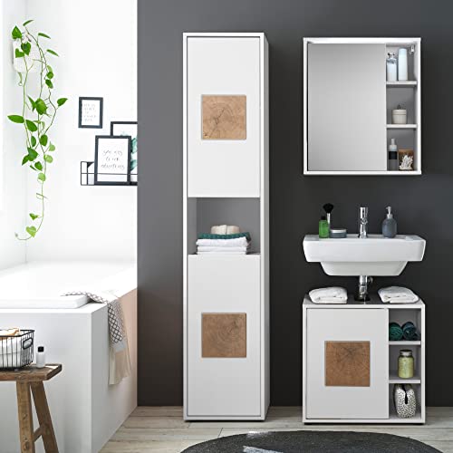 Veel opbergruimte: met zijn 2 deuren en het open vak biedt de hoge kast genoeg ruimte om je badkamerbenodigdheden zoals handdoeken en cosmetica netjes en ruimtebesparend op te bergen.