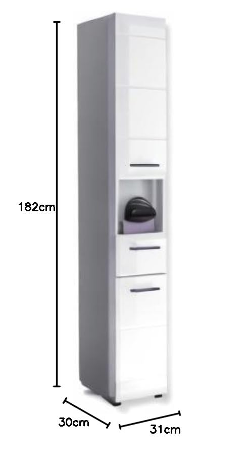 trendteam smart living Badkamer hoge kast Skin, 30 x 182 x 31 cm in wit hoogglans met open vak
