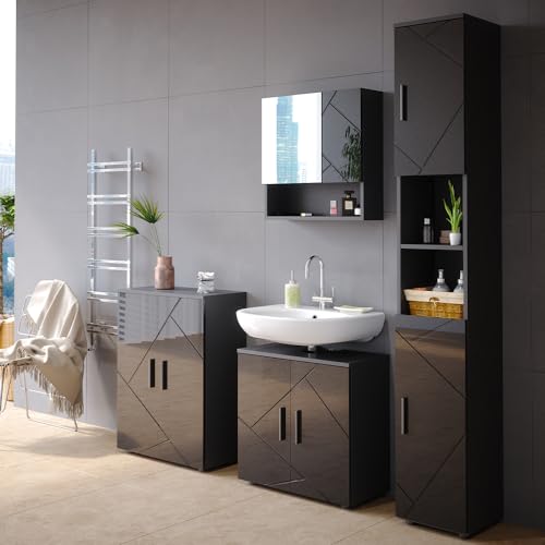Vicco Irma Badkamerkast, hoge kast, 6 vakken, antraciet hoogglans