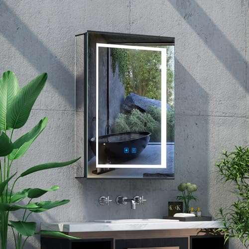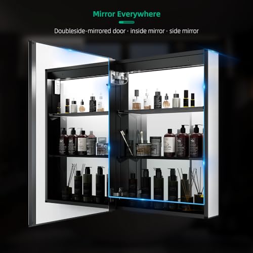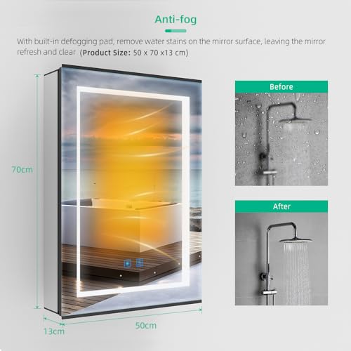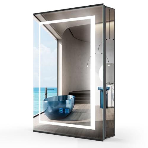 LUMIRRORS®badkamer spiegelkast met mat zwart aluminium dimbare helderheid touch-schakelaar anti-condens scheerapparaat socket verstelbare planken opbergkast 50×70 cm voor make-up scheren