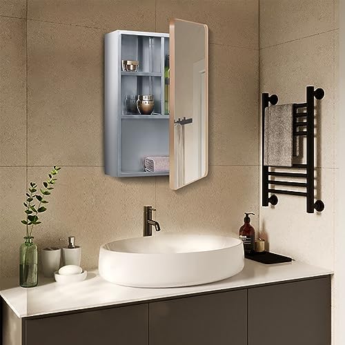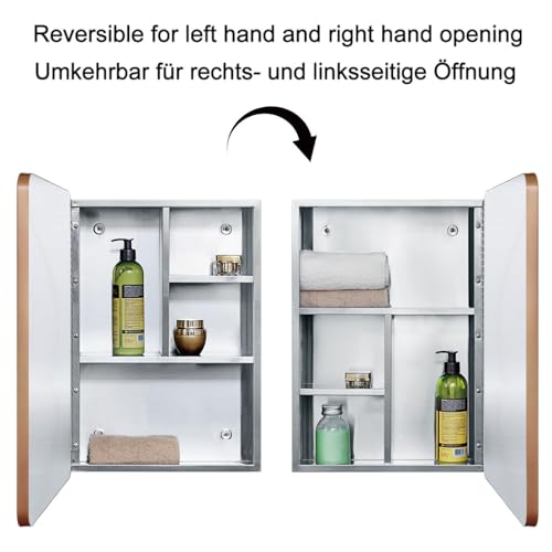Spiegelkast van roestvrij staal voor badkamer met roségouden ingelijste deur, meerdere planken, 37×53 cm (15 x 21 inch)
