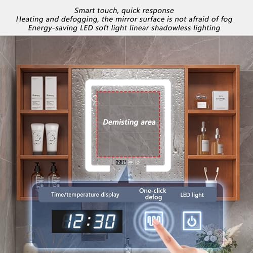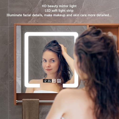 Intelligent Defogging with Time and Temperature Display: Bid farewell to foggy mirrors; even in damp bathroom conditions, lighted medicine cabinet with defogger ensures a clear view. The built-in time and temperature display of lighted medicine cabinet with mirror add a modern touch to your bathroom while keeping you informed of the current conditions.