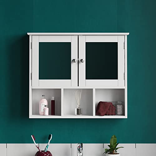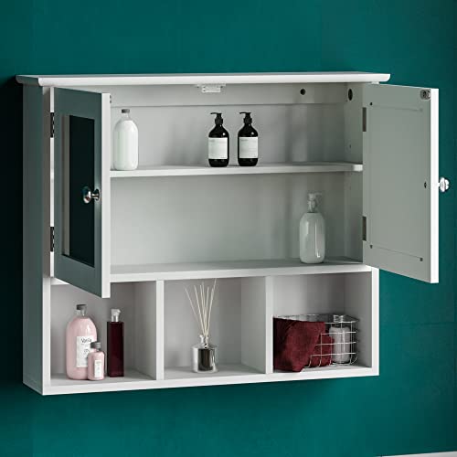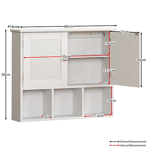 Bath Vida 333467 Priano Badkamerkast met dubbele deur, met spiegel, opbergplanken, wandmontage, wit, 50 x 60 x 14 cm (h x b x d)