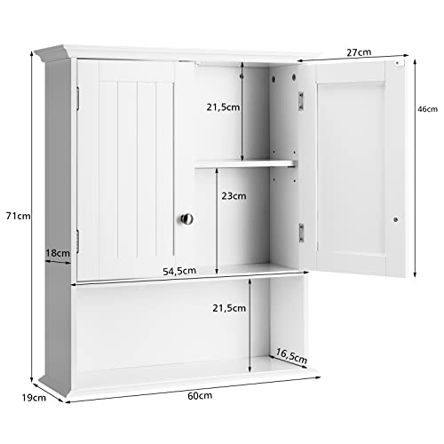COSTWAY Badkamer Wandkast, Houten Hangend Kast met Deuren & Planken, Multifunctioneel Opberg Kast Geschikt voor Badkamer, Keuken, Slaapkamer, Wit