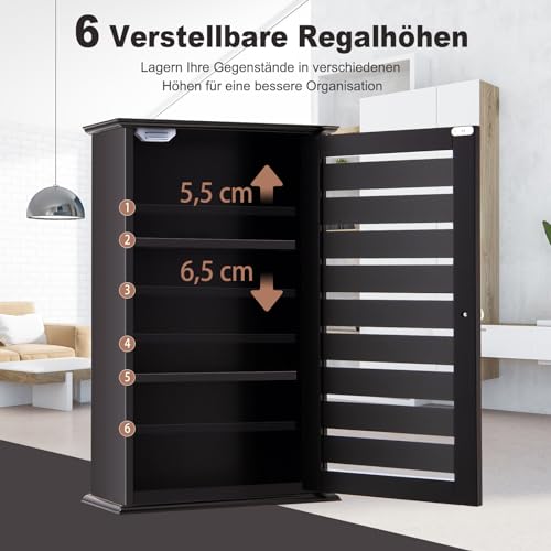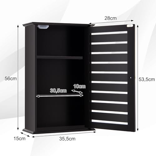 COSTWAY Hangkast voor badkamer, wandkast met 1 deur en 2 verstelbare planken, badkamerkast, medicijnkastje voor keuken, badkamer, ingang, 35,5 x 15 x 56 cm