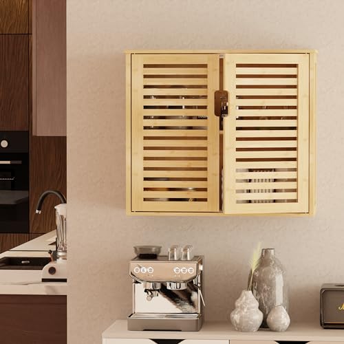 VEELZIJDIGE WANDKAST – Onze bamboe wandkast past perfect in elke kamer. Met de dubbele deuren kun je handdoeken, toiletpapier en shampoo en andere toiletartikelen organiseren als badkamermeubel boven het toilet; als keukenkastje voor het opbergen van borden, servies en kruidenpotjes; of als make-up ijdelheid, medicijnkastje of gangkastje, enz. Het slanke en moderne elegante uiterlijk is perfect voor de woonkamer, slaapkamer, keuken