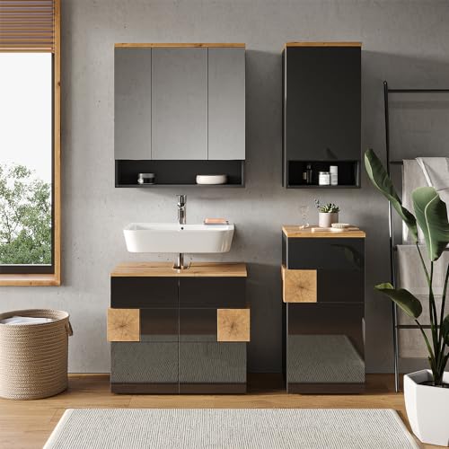 Vicco Badkamerkast “Eden”, Antraciet/Artisanaal eiken, 40 x 77 cm