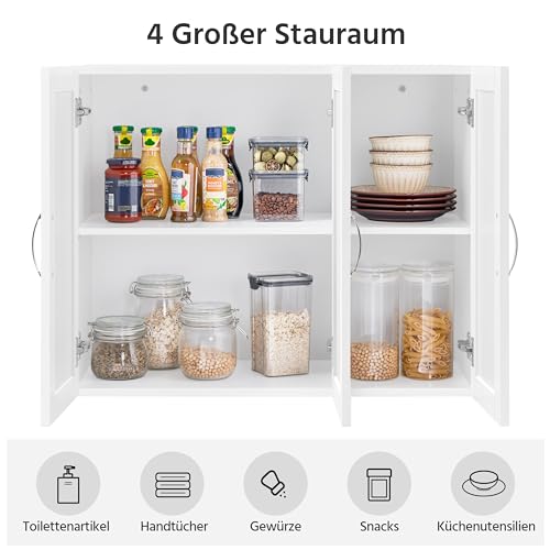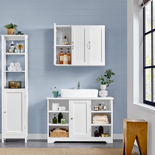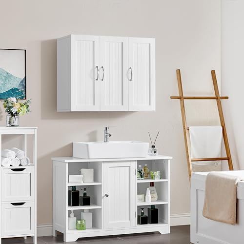Yaheetech Badkamerkast, hangkast, wandkast met 3 deuren, badkamerkast, wandrek, keukenkast met in hoogte verstelbare plank voor badkamer, keuken, wasruimte, 75 x 31 x 60 cm