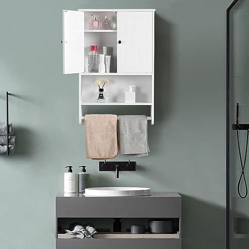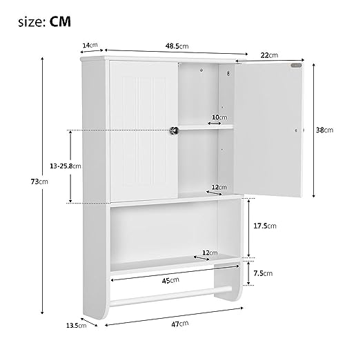 Yaheetech Hangkast, wandkast, badkamerkast, keukenkast, rek, opslag met deur en plank, wit, LBH: 48,5 x 14 x 73 cm