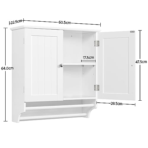 Hangende kast: deze wandkast met de afmetingen van 60,5 cm L × 22,5 cm B × 64 cm H is hangend ontworpen om de verticale ruimte optimaal te benutten. Door het ruimtebesparende ontwerp is de hangkast geschikt voor kleine ruimtes.
