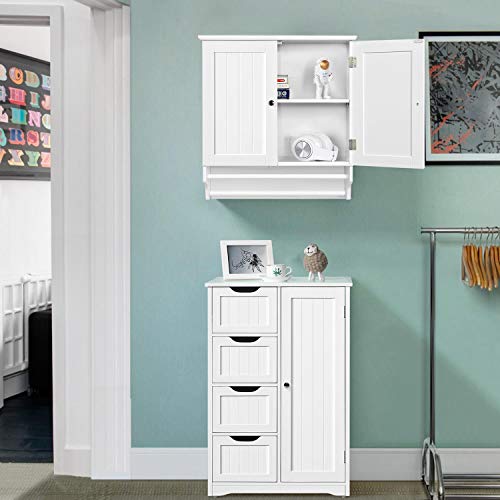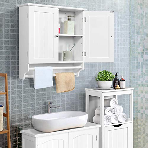 Yaheetech Hangkast, wandkast, keukenkast, 2-traps badkamerkast, opbergkast met in hoogte verstelbare plank, hout