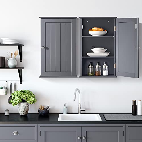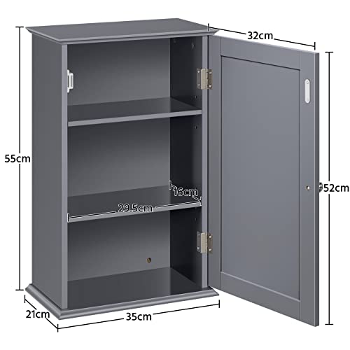 Yaheetech Hangkast, wandkast met één deur, badkamerkast, keukenkast, medicijnkastje in donkergrijs, 35 x 21 x 55 cm