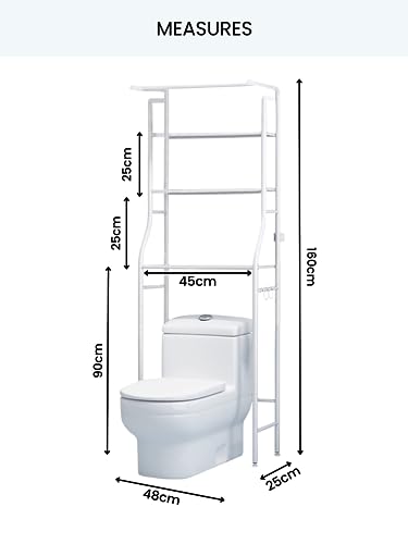 OPTIMALISEER UW RUIMTE: 3-laags opbergrek ideaal voor gebruik in de badkamer boven het toilet. U kunt handdoeken, shampoo, gelflessen, toiletpapier en andere benodigdheden ordenen en plaatsen om uw badkamer er schoon en netjes uit te laten zien
