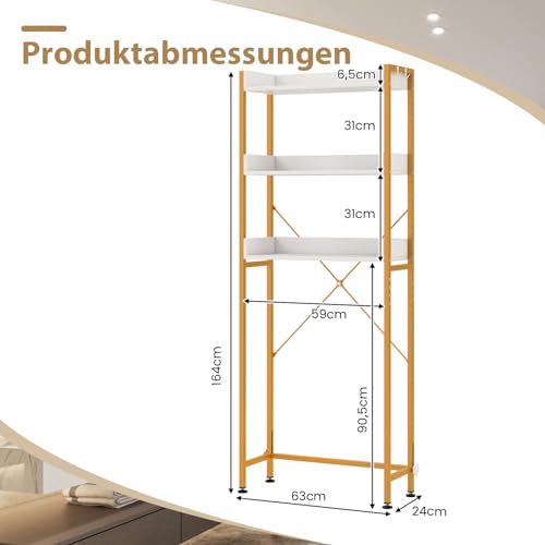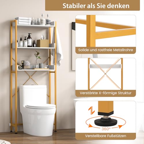 COSTWAY Toiletrek, 3-traps badkamerrek, ruimtebesparend, wasmachinerek met 4 haken en verstelbare poten, badkamerrek voor boven het toilet, wc-rek voor badkamer (wit)