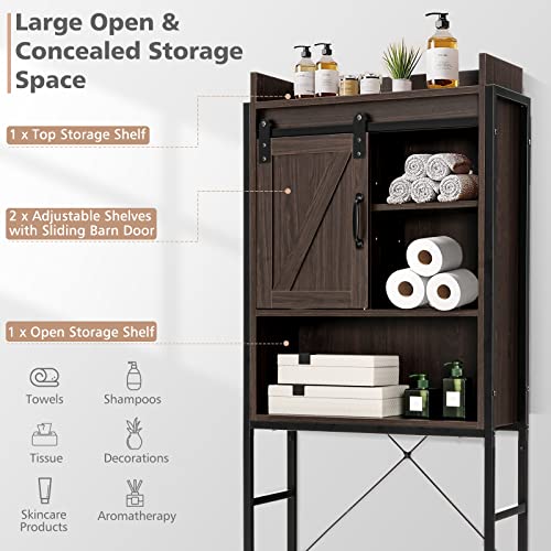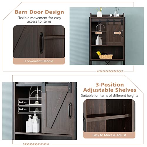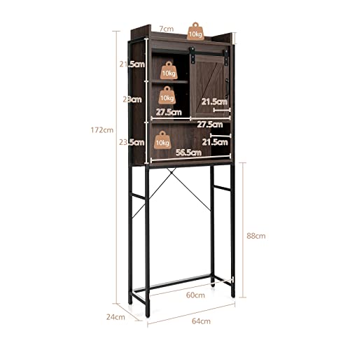GIANTEX Badkamerkast, toiletkast, 4 planken, badkamerrek, toiletrek, vrijstaand, badkamerkast met verstelbare planken en schuifdeur, badkamerkast, wc-rek (bruin)