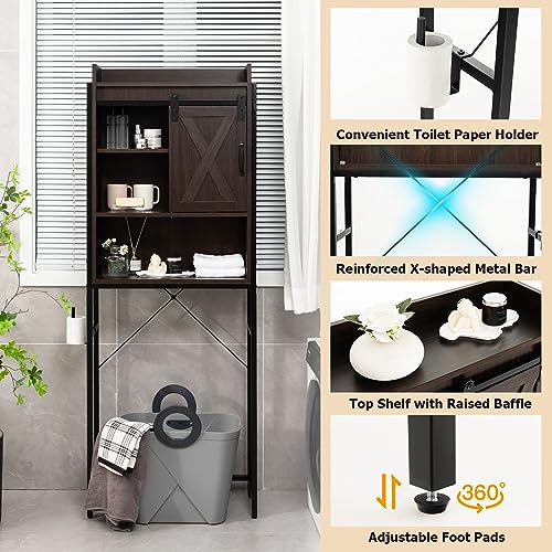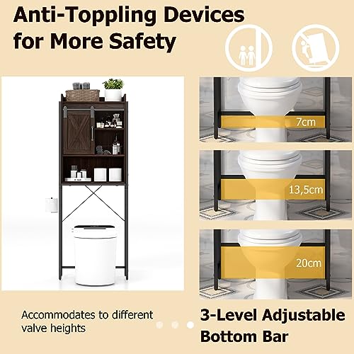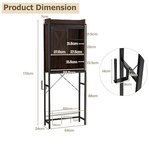 LIFEZEAL Badkamerkast boven toilet, vloerkast met 3 planken en deur, plank boven toilet, 64 x 24 x 172 cm, bruin