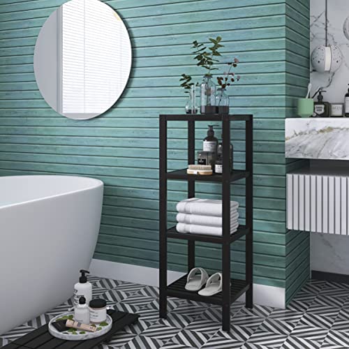SMIBUY Badkamer Opbergplank, 4-Tier Bamboe Rack Organizer, Multifunctionele Rek voor Woonkamer Slaapkamer Keuken (Zwart)