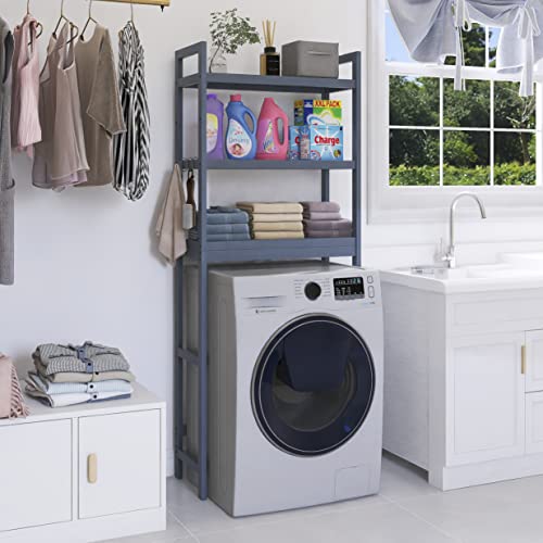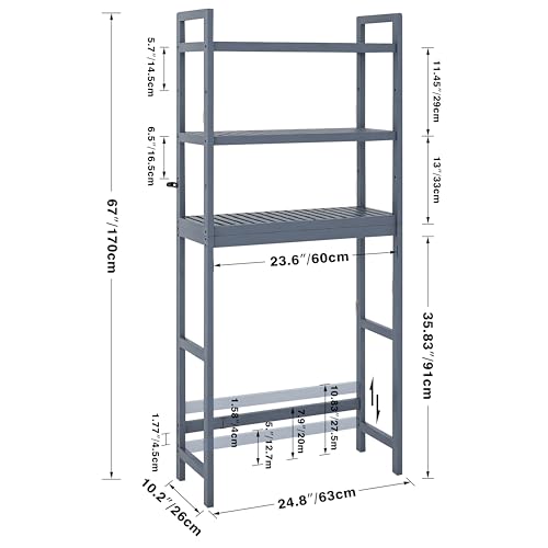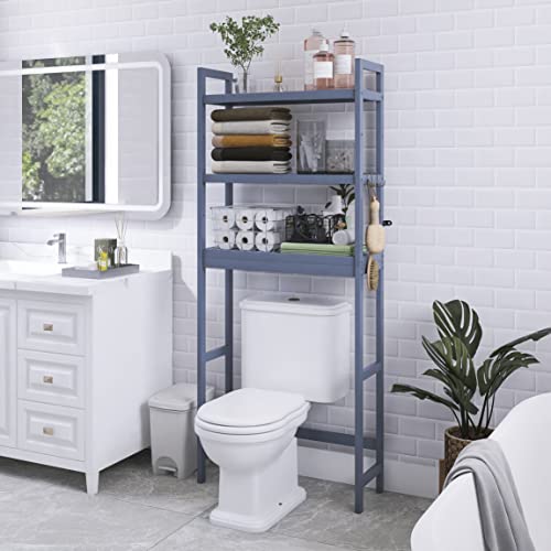 SMIBUY Badkamer opbergplank, bamboe over-het-toilet organizerrek, vrijstaand toilet ruimtebesparend met 3-laags verstelbare planken (grijs)