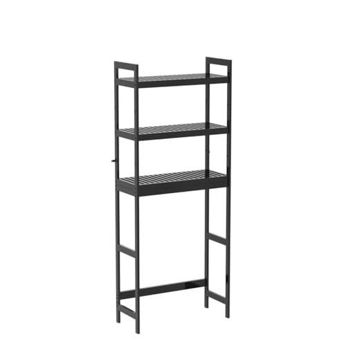 SMIBUY badkamer opbergplank, bamboe over-het-toilet organizerrek, vrijstaand toilet ruimtebesparend met 3-laags verstelbare planken (zwart)