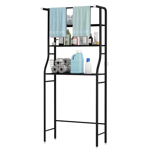 UDEAR Ruimtebespaarder Boven de Wasmachine, 3-Plank Badkamer Hoekstandaard Met Ophangstang, Toren Plank Opslag Organizer, Zwart