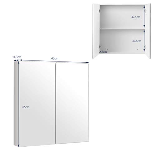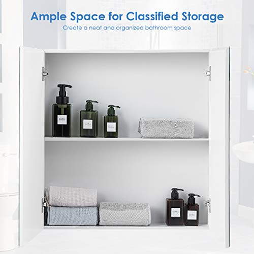 COSTWAY Badkamer spiegelkast, badkamerkast, medicijnkastje, 2 laags muur gemonteerde opbergkast met dubbele spiegel deuren, ruimte spaarder, moderne gespiegelde kast, voor badkamer, woonkamer, slaapkamer