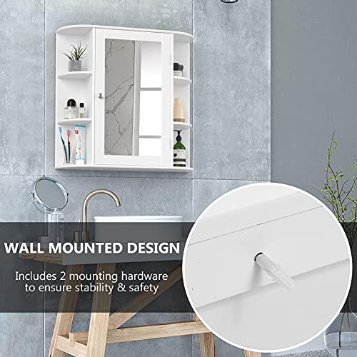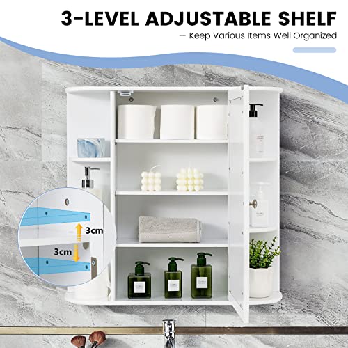 GIANTEX Wandkast voor badkamer, hangkast met spiegeldeuren, 6 zijvakken en 4 planken, 3 kleuren verkrijgbaar, 66 x 16,5 x 63 cm (wit)