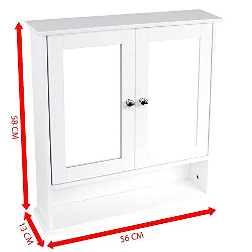 Home Discount Badkamerkast met 2 deuren, met spiegel, wandmontage, wit