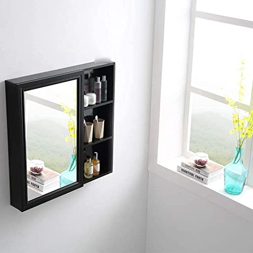 ROLTIN Bathroom Wall Mounted Cabinet, Storage Organizer Bathroom Mirror Cabinet Shelf Home Bathroom Mirror Box Wall-Mounted Mirror Bathroom Mirror Wall-Mounted (Black 60*