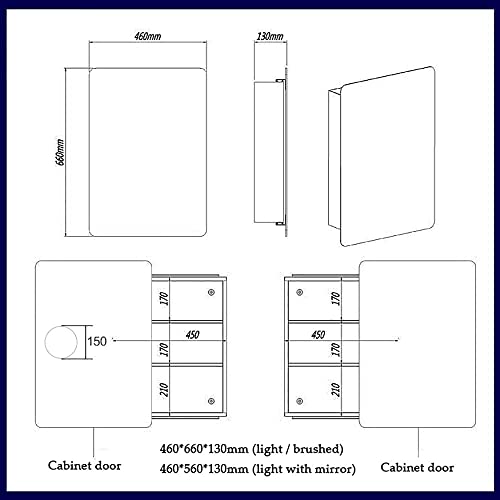 Material: Advanced glass silver mirror, vivid image, clear and not deformed; The cabinet body is made of high quality stainless steel sheet, waterproof, moisture proof, rust proof, mirror-like bright and beautiful surface. Make the bathroom brighter and more spacious.