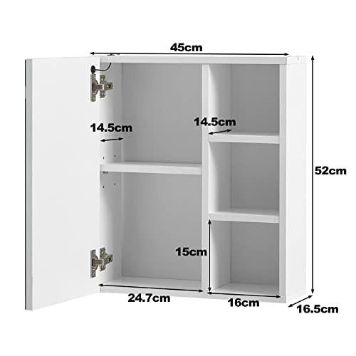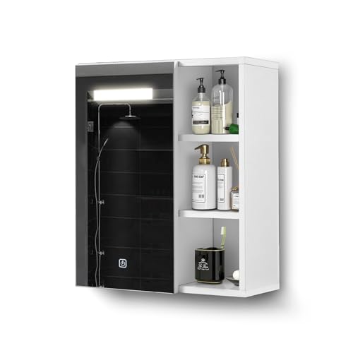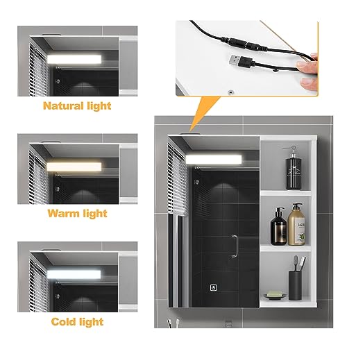 TUKAILAi Badkamer Spiegelkast met LED-verlichting 1 deur open plank wandmontage opbergkast badkamerkast voor badkamer 45 x 50 cm