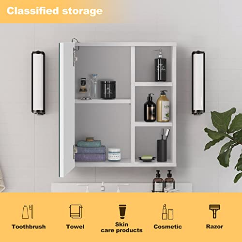 Spiegelkast voor in de badkamer: gemaakt van MDF en spiegel is vocht- en schimmelbestendig, gemakkelijk schoon te maken. HD-kwikspiegel, niet gemakkelijk te krassen, duidelijkere beeldvorming. De spiegel absoluut elke hoek bij make-up.