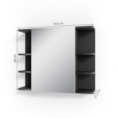 Vicco Badkamerspiegelkast “Fynn”, Antraciet/Wit, 80 x 64 cm