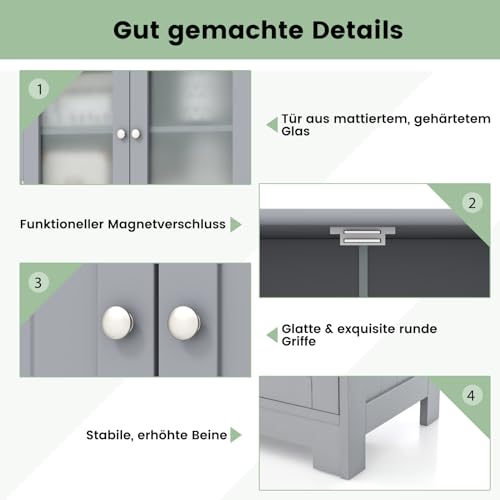 COSTWAY Badkamerkast met 2 laden en 4 deuren, badkamerkast met verstelbare planken, opbergkast voor badkamer, keuken, woonkamer (grijs)