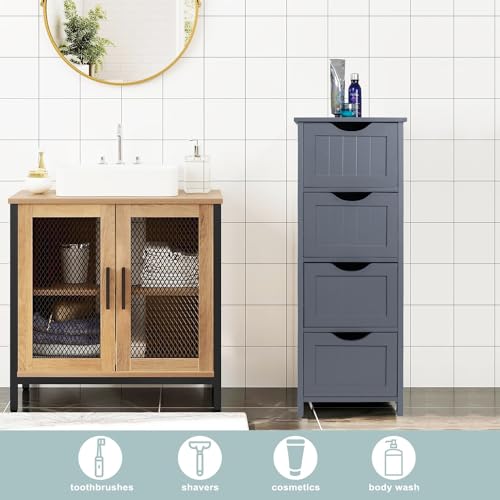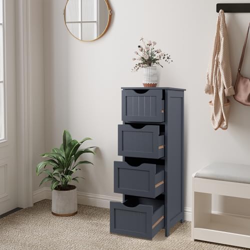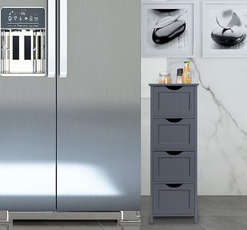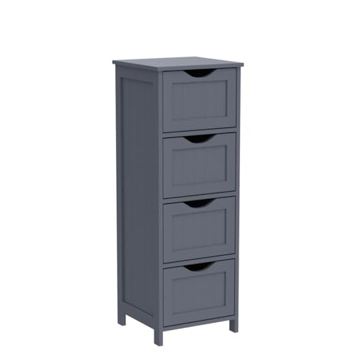 eSituro Badkamer Opbergkast met 4 Lade Dresser Organizer Floor Standing Cabinet Unit Opslag Hout, Grijs
