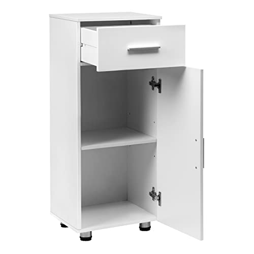EUGAD Ruimtebesparende badkamerkast, zuilkast, houten kast, vrijstaand, met lade, deur en verstelbare plank, wit
