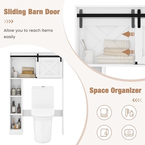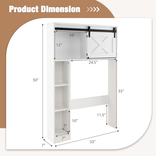 Giantex Toiletopbergkast, vrijstaande kast met deur voor badkamer, organizer met kantelvoorziening voor toilet, 84 x 17 x 128 cm, wit (wit)