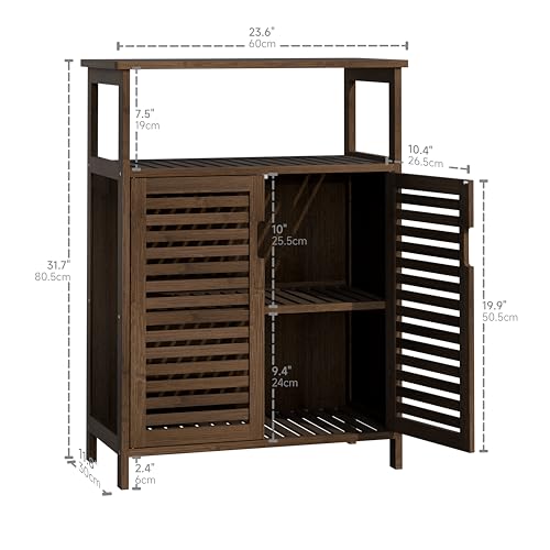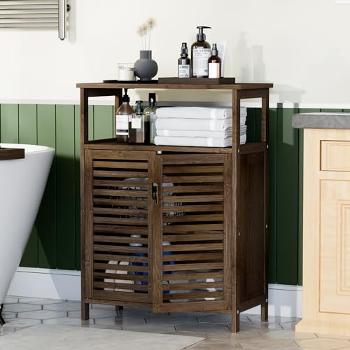 HITNET Bamboe Badkamer Opbergkast, Vloer Staande Keukenkast Organisator met 2 Deuren en Open Planken, Walnoot