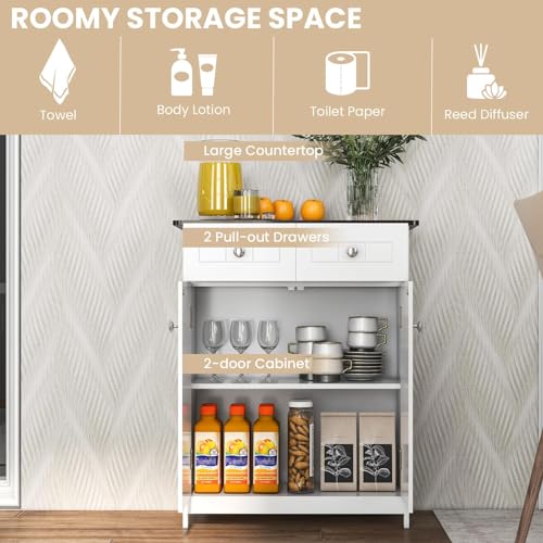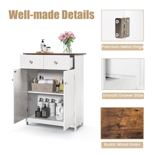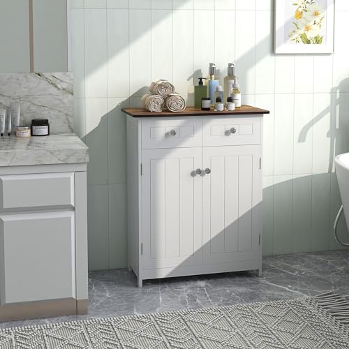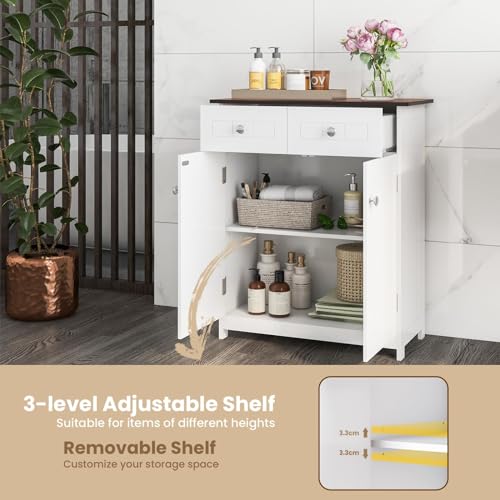 KOMFOTTEU Badkamerkast met verstelbare plank, badkamerkast met 2 laden en 2 deuren, opbergkast bijzetkast 60 x 30 x 75 cm, wit