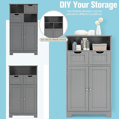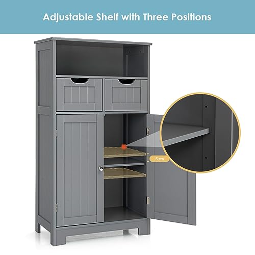 LIFEZEAL Badkamerkast met laden en verstelbare planken, opbergkast op houten voet, moderne hoge kast voor keuken, woonkamer, badkamer, 60 x 30 x 109 cm (grijs)