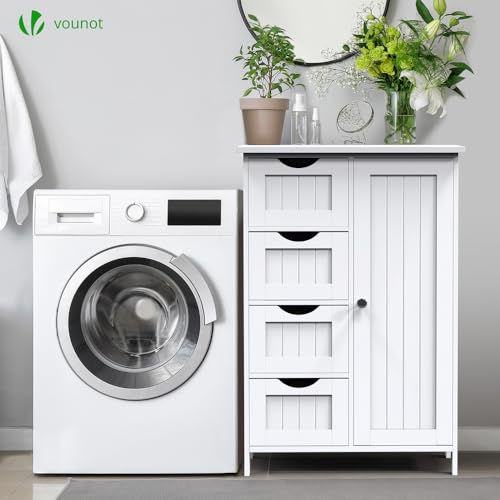 VOUNOT Badkamermeubel, badkamermeubel, zijkast met 4 laden, kastdeur & verstelbare planken voor badkamer woonkamer keuken slaapkamer 30x55x82cm Wit